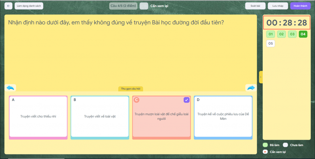 Làm sao để biết còn bao nhiêu thời gian để làm bài kiểm tra?