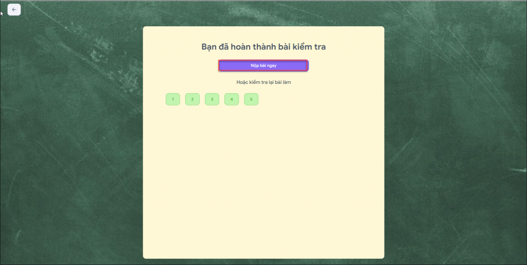 - Sau khi hoàn thành bài kiểm tra, học sinh chọn Nộp bài ngay.