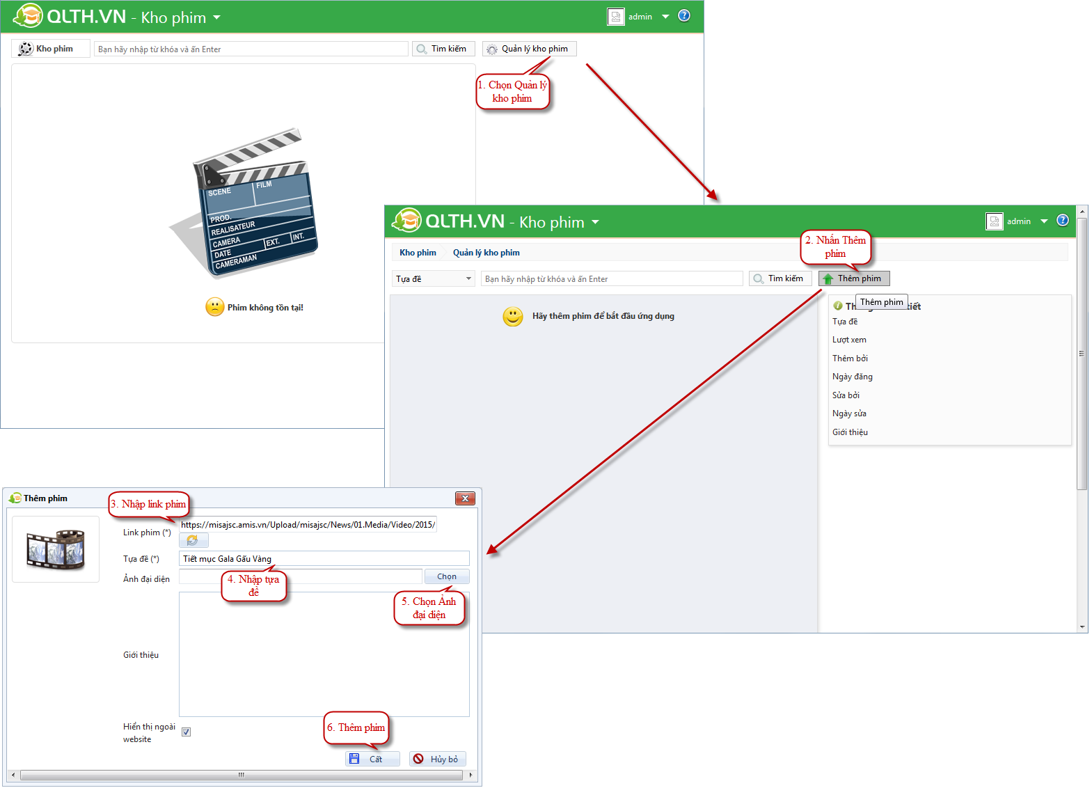 - Bước 2: Đưa phim lên ứng dụng kho phim