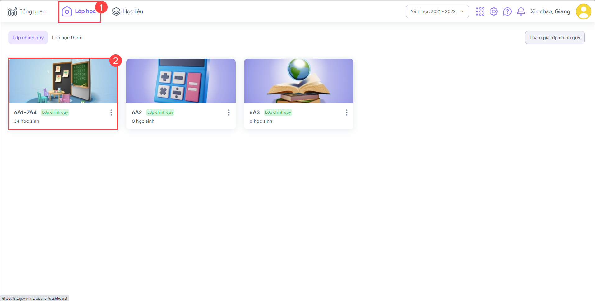1. Vào Lớp học, chọn lớp học cần xóa học sinh.