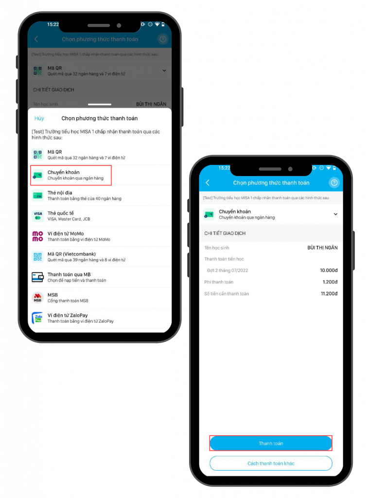 - Nội dung chuyển tiền: Nhập Tên trường – Tên học sinh – Số tiền để Nhà trường dễ dàng đối soát và ghi nhận thành công.