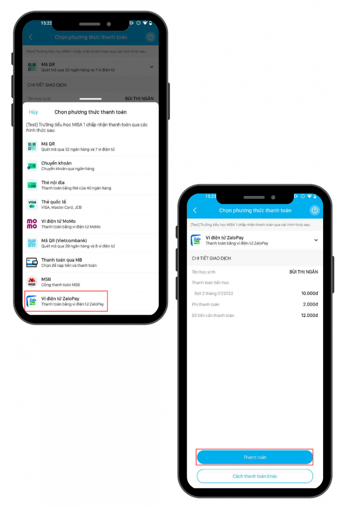 Điều kiện: Nhà trường chấp nhận thanh toán tiền học qua Ví điện tử ZaloPay mà Phụ huynh đang sử dụng.