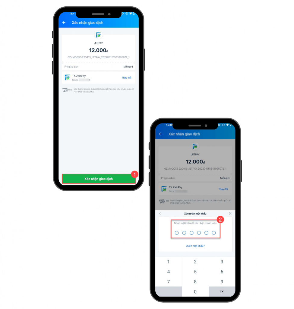 - Chọn Xác nhận giao dịch để thanh toán tiền học cho con, nhập mật khẩu ZaloPay bên trên để xác nhận thanh toán.