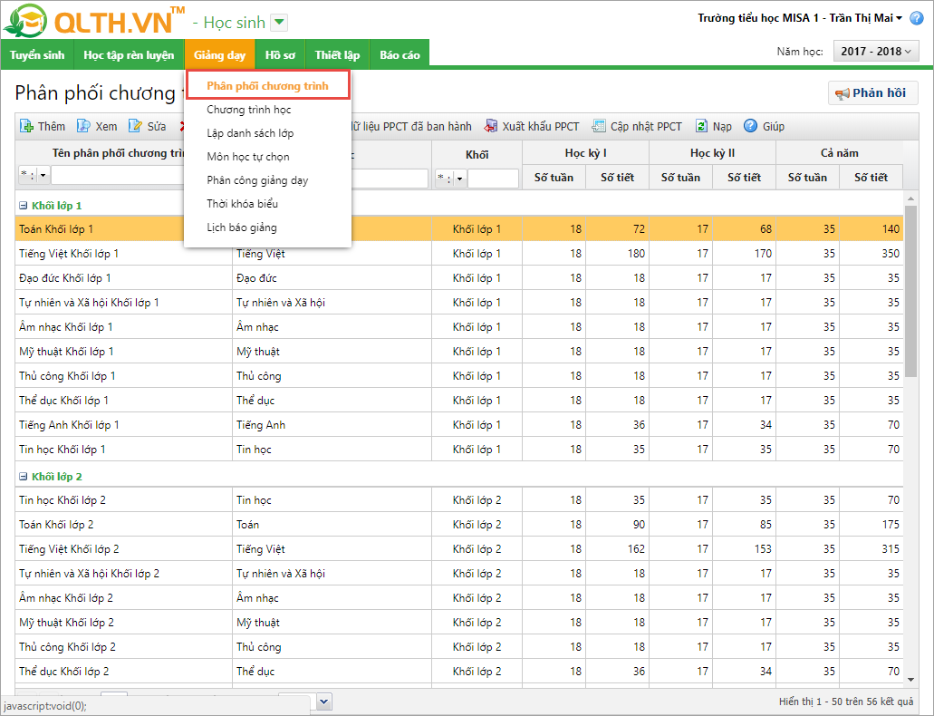 1. Vào menu Giảng dạy\Phân phối chương trình