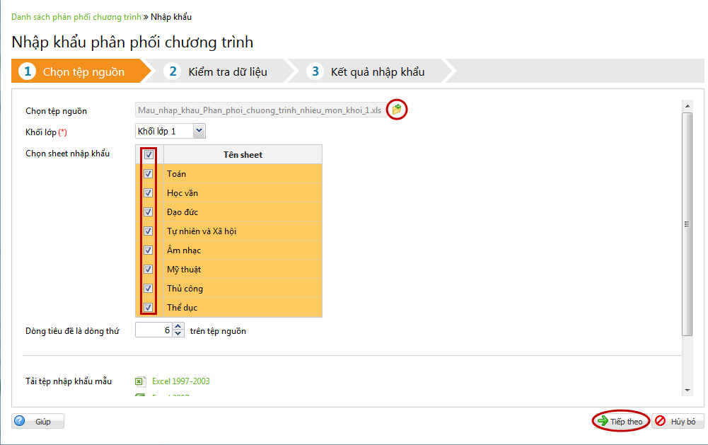 4. Tải tệp mẫu nhập khẩu phân phối chương trình do phần mềm cung cấp.