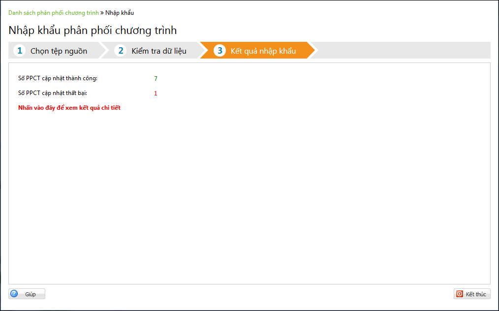 Lưu ý: Có thể xem kết quả nhập khẩu chi tiết bằng cách chọn Nhấn vào đây để xem kết quả chi tiết.