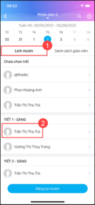 - Sau khi đăng ký mượn thiết bị, anh/chị nhấn vào tên mình tại mục Lịch sử mượn.