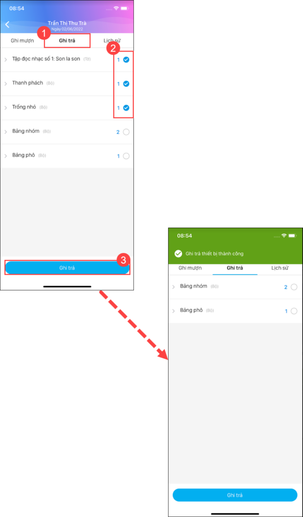 - Tại mục Ghi trả, tích chọn thiết bị cần ghi trả.
