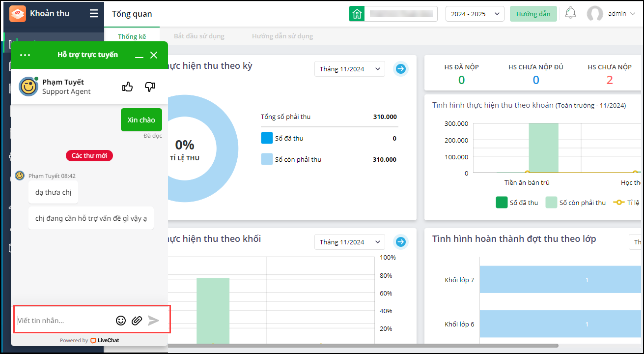 - Anh/chị nhập vấn đề đang gặp vướng mắc cần được hỗ trợ tại khung chat.