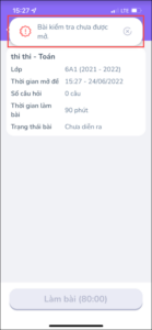 - Trường hợp học sinh vào làm bài kiểm tra mà không thể làm bài và nhận thông báo như ảnh: