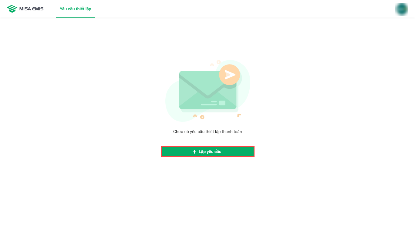 (Lưu ý: Trường hợp quên mật khẩu, vui lòng liên hệ MISA để được hỗ trợ qua: [email protected]) - Chọn Lập yêu cầu để lập thông tin yêu cầu thiết lập thanh toán cho Nhà trường.