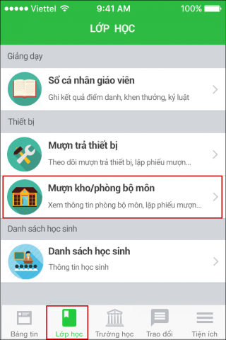 1. Đăng nhập vào ứng dụng Giáo viên, chọn tab Lớp học.
