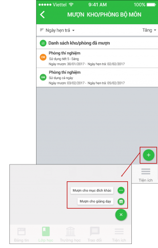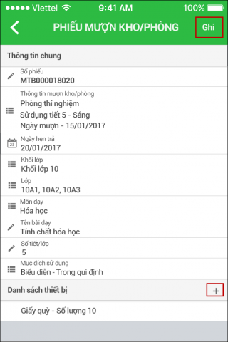 - Chạm vào biểu tượng dấu cộng tại phần Danh sách thiết bị để thêm thiết bị được mượn.