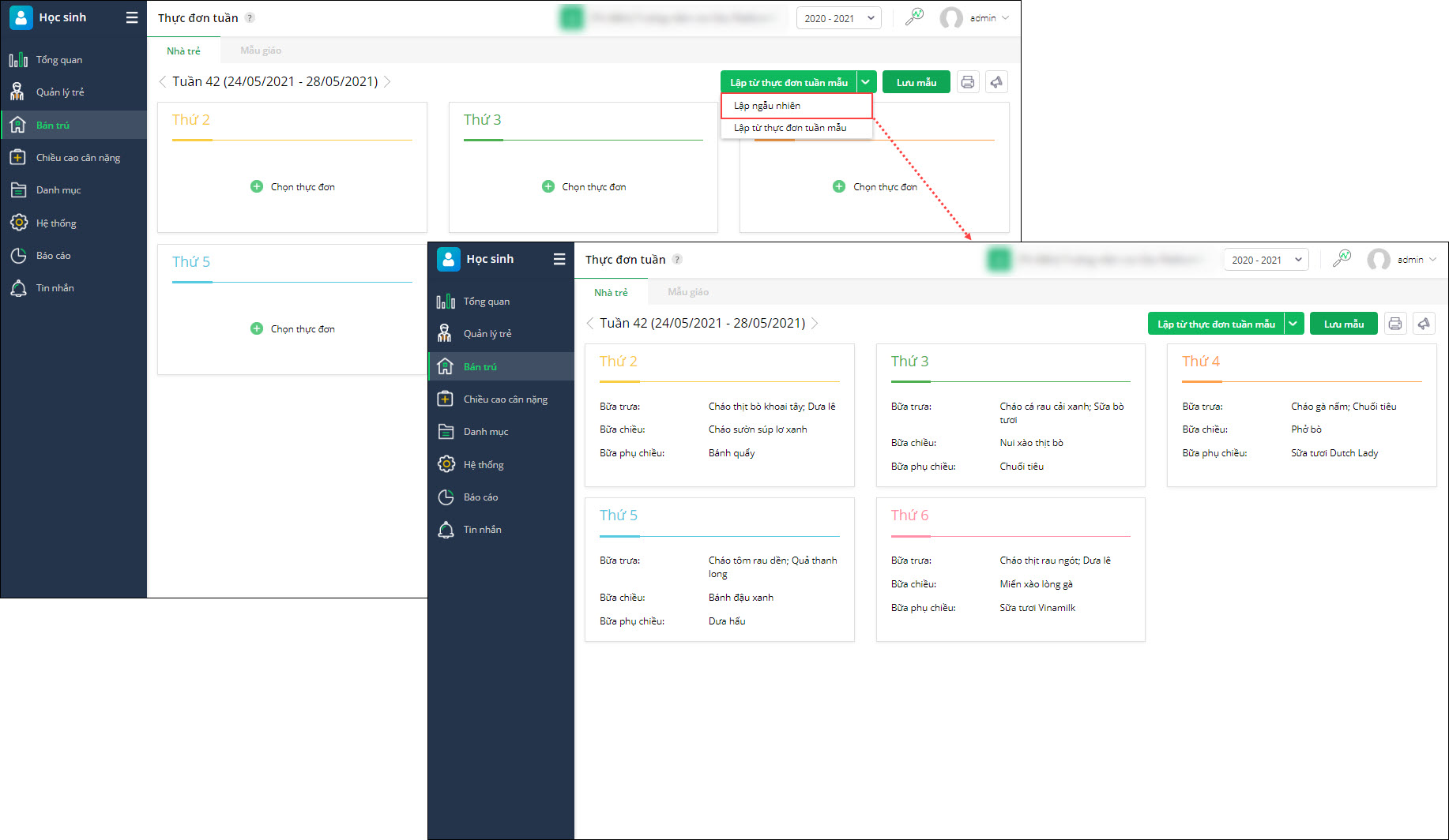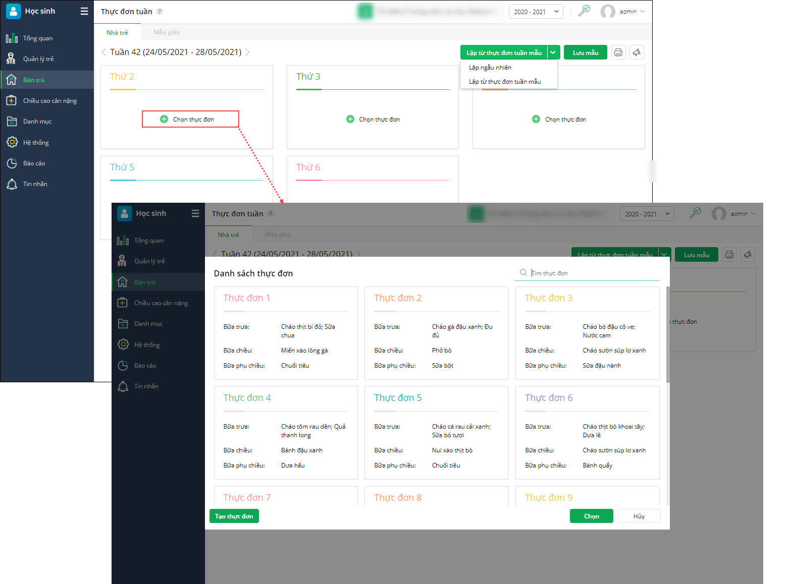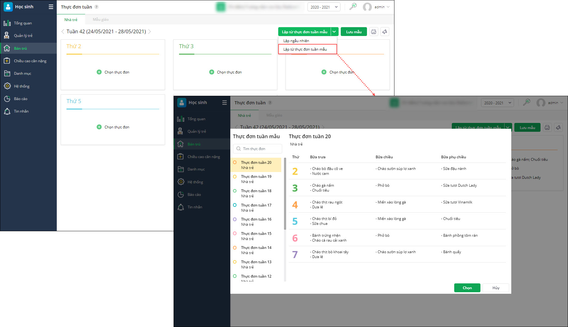 Cách 2: Lập thực đơn tuần từ thực đơn mẫu