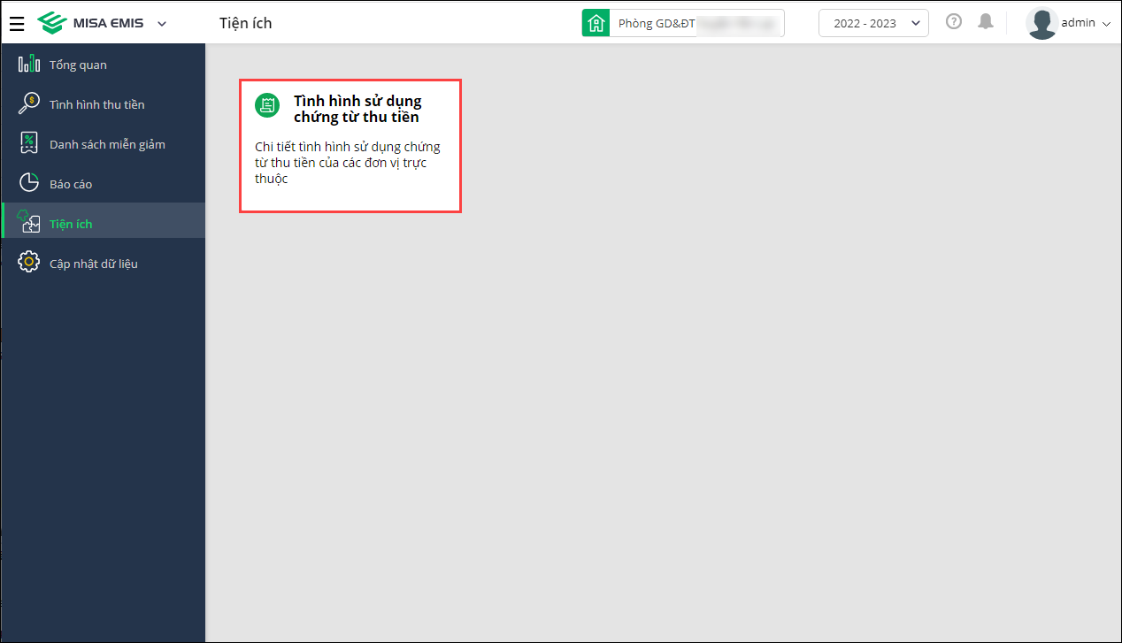 - Cán bộ Phòng Tài chính có thể theo dõi chi tiết tình hình sử dụng chứng từ thu tiền của các đơn vị trực thuộc.