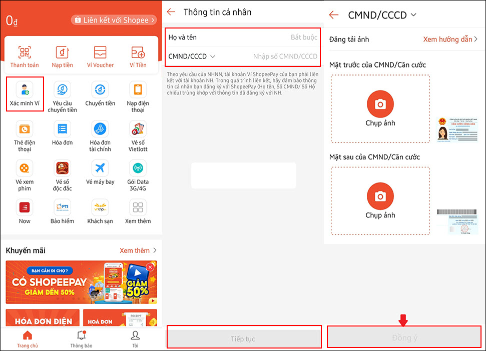 - Số điện thoại/CMND/CCCD/Hộ chiếu dùng cho Ví ShopeePay phải trùng với số điện thoại/CMND/CCCD/Hộ chiếu dùng để đăng ký tài khoản Shopee và ngân hàng liên kết.