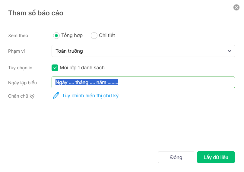 • Phạm vi: Toàn trường/Khối/Lớp.