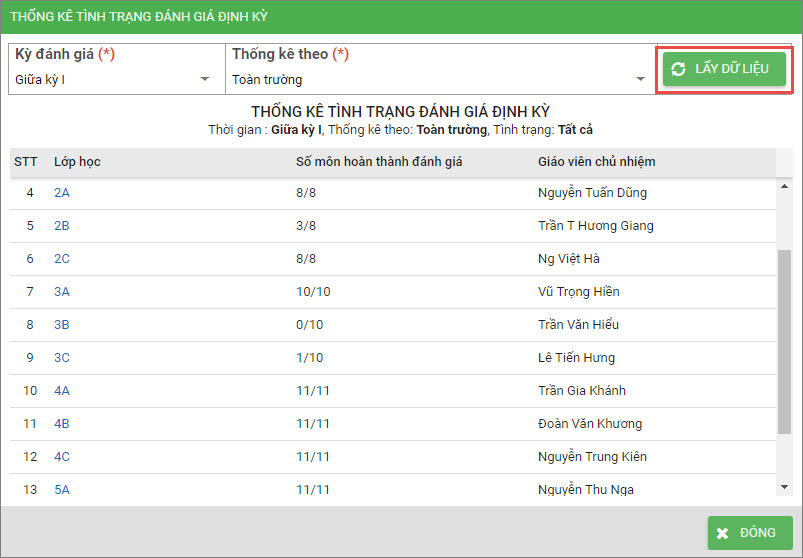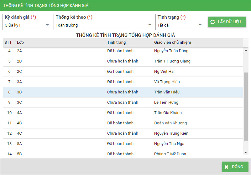 – Hiệu trưởng xem thống kê tình trạng đánh giá đình kỳ