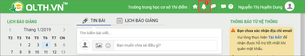 • Tại màn hình trang chủ, phần mềm hiển thị có thông báo mới tới giáo viên.
