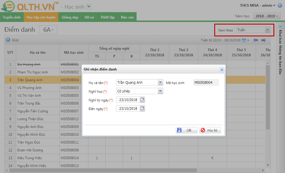 - Từ phiên bản R72, phần mềm cải tiến giao diện điểm danh cấp THCS/THPT, cụ thể như sau: