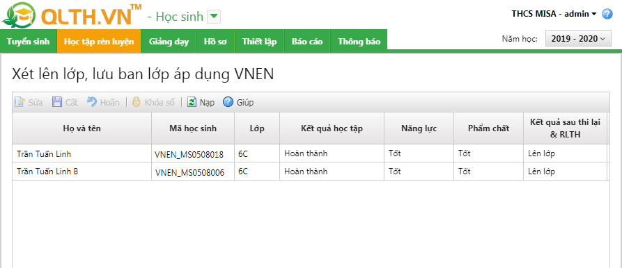 2. Chương trình đã tự động căn cứ vào kết quả thi lại rèn luyện trong hè để cập nhật kết quả lên lớp hoặc lưu ban. GVCN kiểm tra và cập nhật lại kết quả nếu có thay đổi.