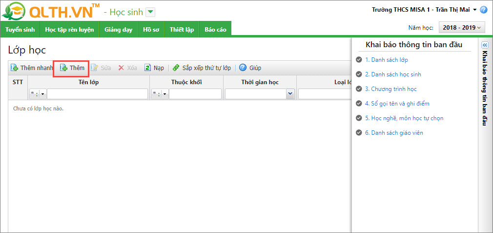 1. Nhấn Thêm trên danh sách lớp.