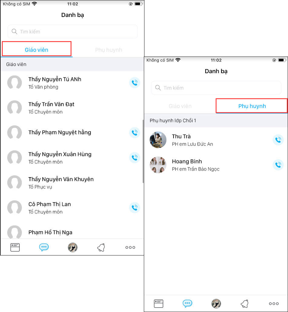 2. Thay thế tính năng chat bằng tính năng gọi điện thoại trên SISAP Giáo viên