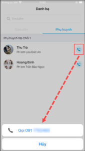 - Phụ huynh có thể gọi điện cho giáo viên phụ trách hoặc các cha mẹ khác trong lớp.