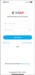 - Sau khi tải và cài đặt ứng dụng SISAP Phụ huynh, cha mẹ đăng nhập để bắt đầu sử dụng.