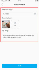 3. Nhập thời gian muốn gửi nội dung lưu ý đến giáo viên, kèm nội dung và đính kèm ảnh (nếu cần).