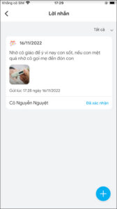6. Sau khi giáo viên nhận và xác nhận lời nhắn sẽ chuyển sang trạng thái Đã xác nhận kèm tên giáo viên xác nhận.