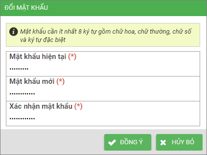 Lưu ý: Mật khẩu cũ của đơn vị đang sử dụng vẫn có hiệu lực, chỉ khi anh/chị thực hiện đổi mật khẩu, quên mật khẩu, thêm người dùng mới, quản lý phụ huynh hay tạo mới dữ liệu mới cần thiết phải thiết lập mật khẩu theo tiêu chuẩn mới