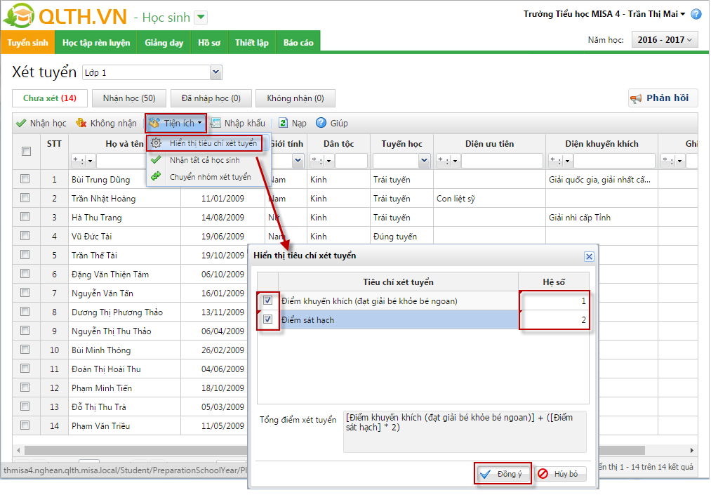 3. Thiết lập tiêu chí xét tuyển.
