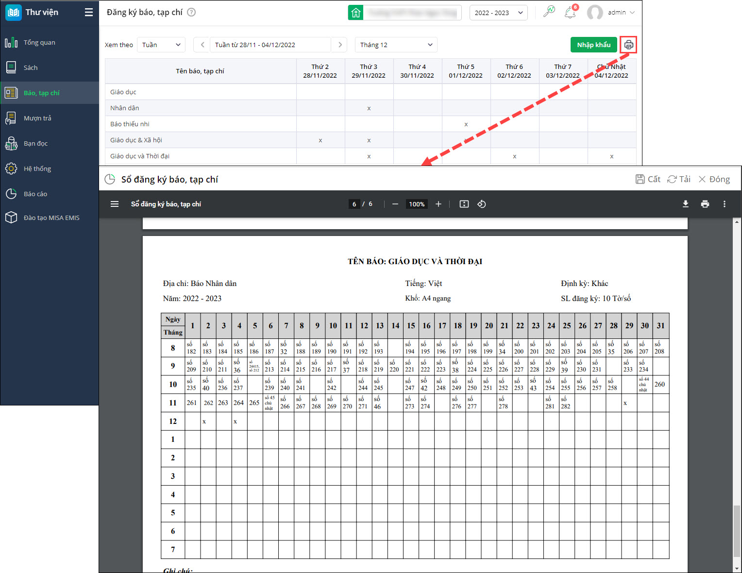 - Cán bộ thư viện nhanh chóng in sổ đăng ký báo, tạp chí làm hồ sơ lưu trữ, quản lý để đơn vị chủ quản kiểm tra.