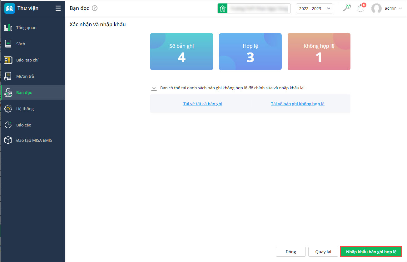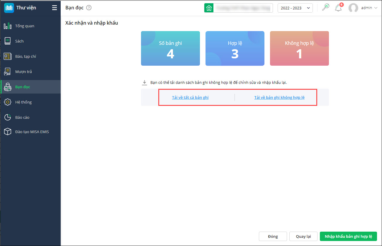 2. Khi nhập khẩu danh sách bạn đọc, cán bộ thư viện mong muốn biết được những bản ghi nào bị lỗi để chỉnh sửa/bổ sung lại giúp nhanh chóng nhập khẩu bạn đọc vào phần mềm