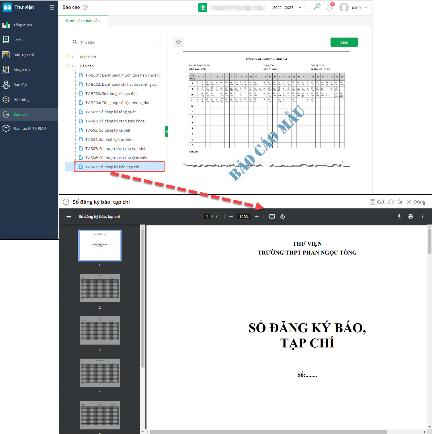 - Tại Báo cáo: Bổ sung báo cáo TV-S07: Sổ đăng ký báo, tạp chí.