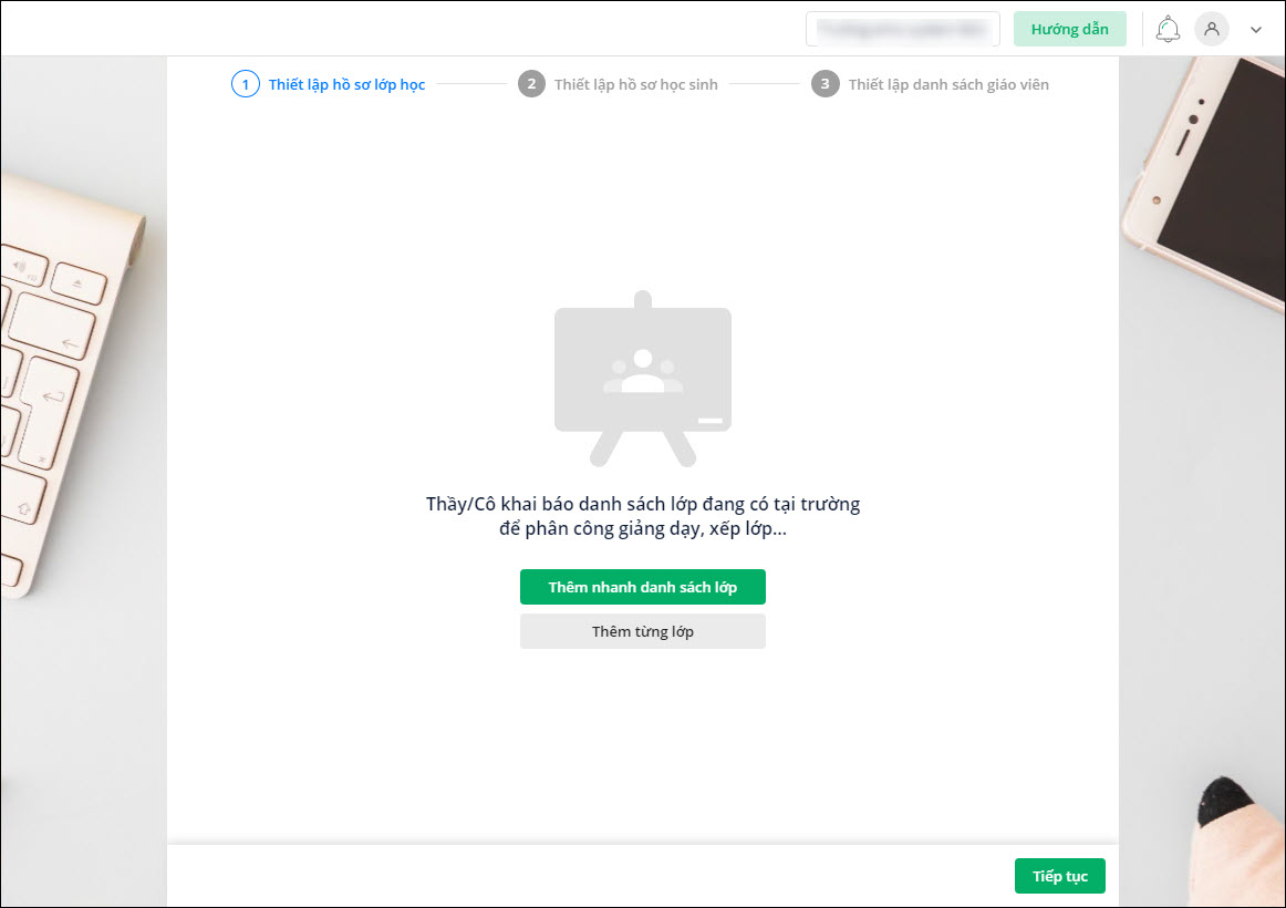 - Anh/chị có thể thiết lập danh sách lớp học tại trường để hỗ trợ việc xếp lớp, phân công giảng dạy bằng cách thêm từng lớp hoặc thêm nhanh danh sách lớp.