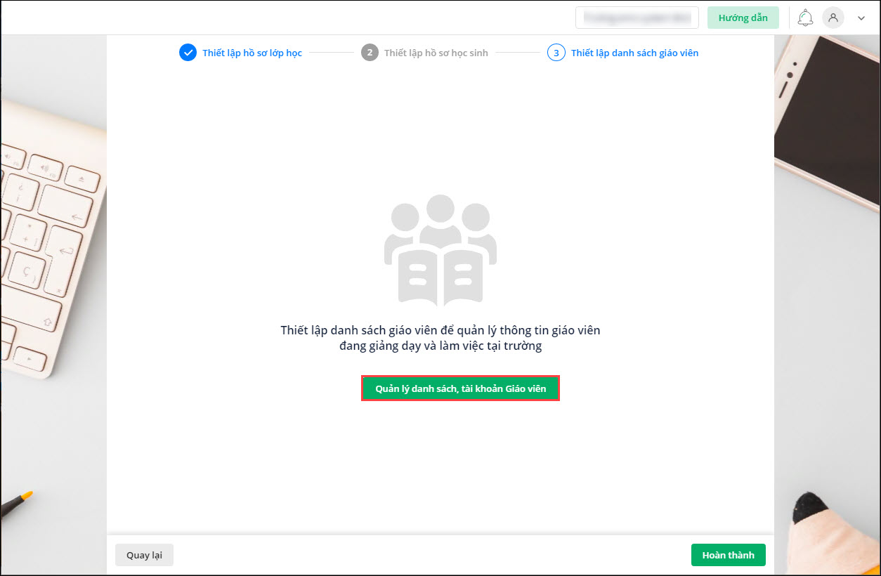 - Phần mềm tự động điều hướng sang phân hệ Tài khoản cán bộ, anh/chị làm theo hướng dẫn chi tiết tại đây để khai báo thông tin giáo viên, phân quyền tài khoản,….