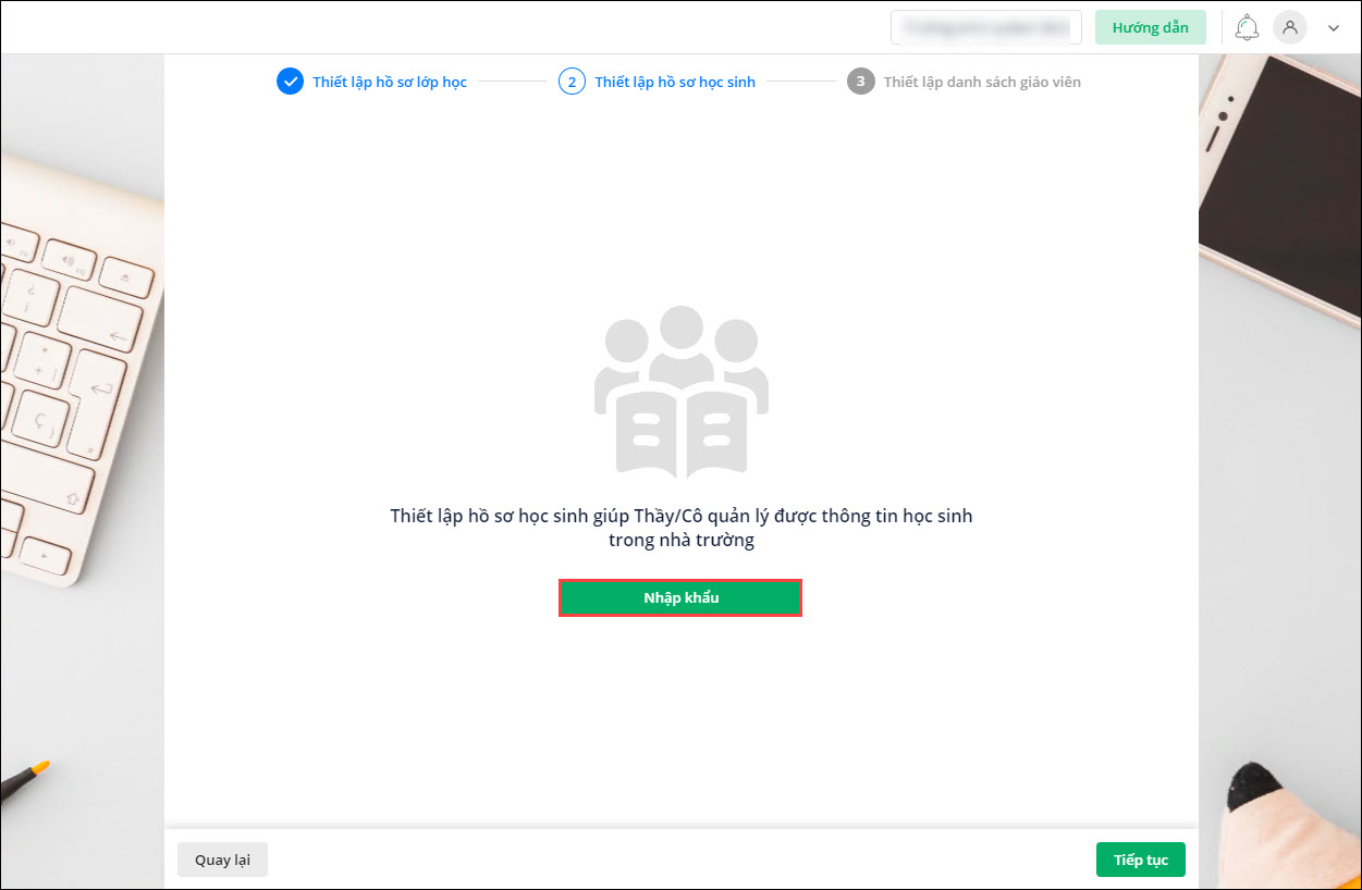 - Để nhập khẩu nhanh hồ sơ học sinh vào phần mềm, phục vụ công tác quản lý, chọn Nhập khẩu.
