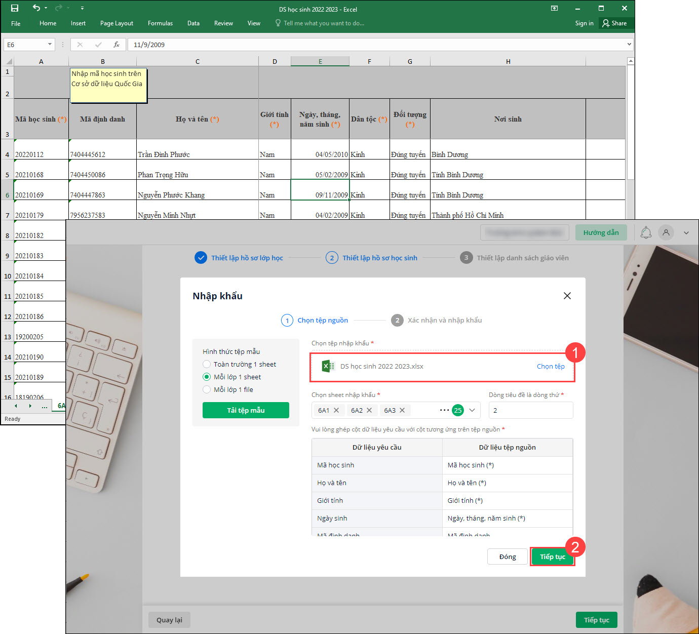 - Khai báo thông tin học sinh tại trường học vào file vừa tải rồi tiến hành nhập khẩu lại vào phần mềm.