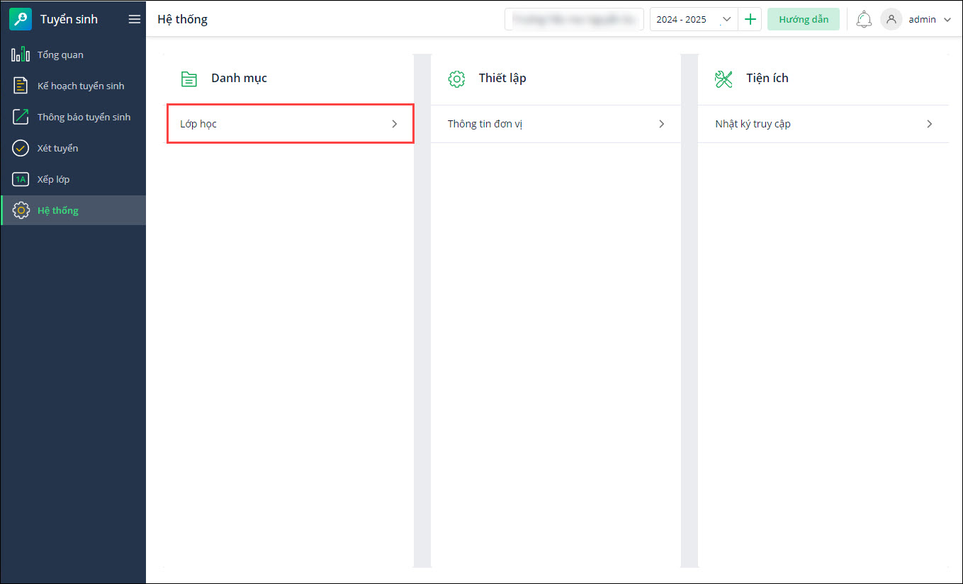Mục đích: Giúp cán bộ tuyển sinh khai báo danh mục lớp học tại đơn vị để phục vụ công tác xếp lớp tại nhà trường.