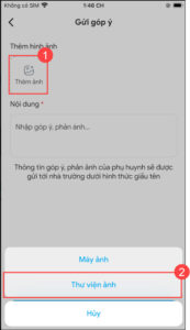 3. Nhập nội dung góp ý, phụ huynh có thể đính kèm ảnh liên quan để làm rõ hơn và minh họa cụ thể cho góp ý của mình. (Tối đa 5 ảnh)