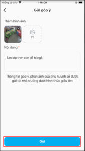 4. Nhấn Gửi để gửi ý kiến đến nhà trường hoàn toàn ẩn danh.