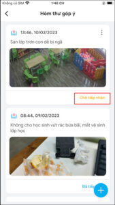 5. Sau khi gửi thành công, ý kiến của phụ huynh sẽ được chuyển sang trạng thái Chờ xác nhận. Phụ huynh vui lòng đợi nhà trường xác nhận.