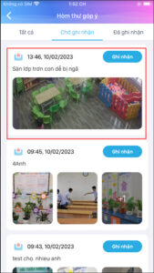 - Tại đây BGH nhà trường dễ dàng quản lý góp ý của phụ huynh tại các mục: Chờ ghi nhận; Đã ghi nhận; Tất cả.