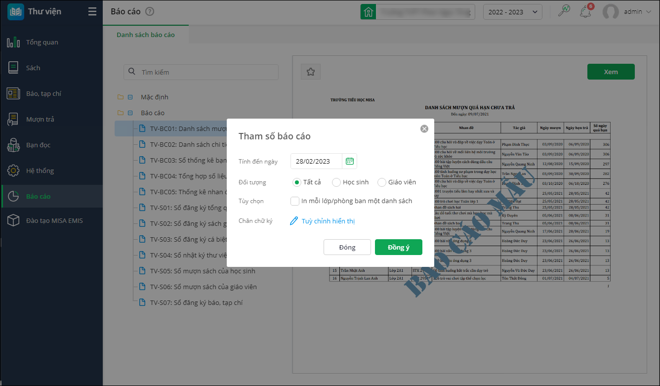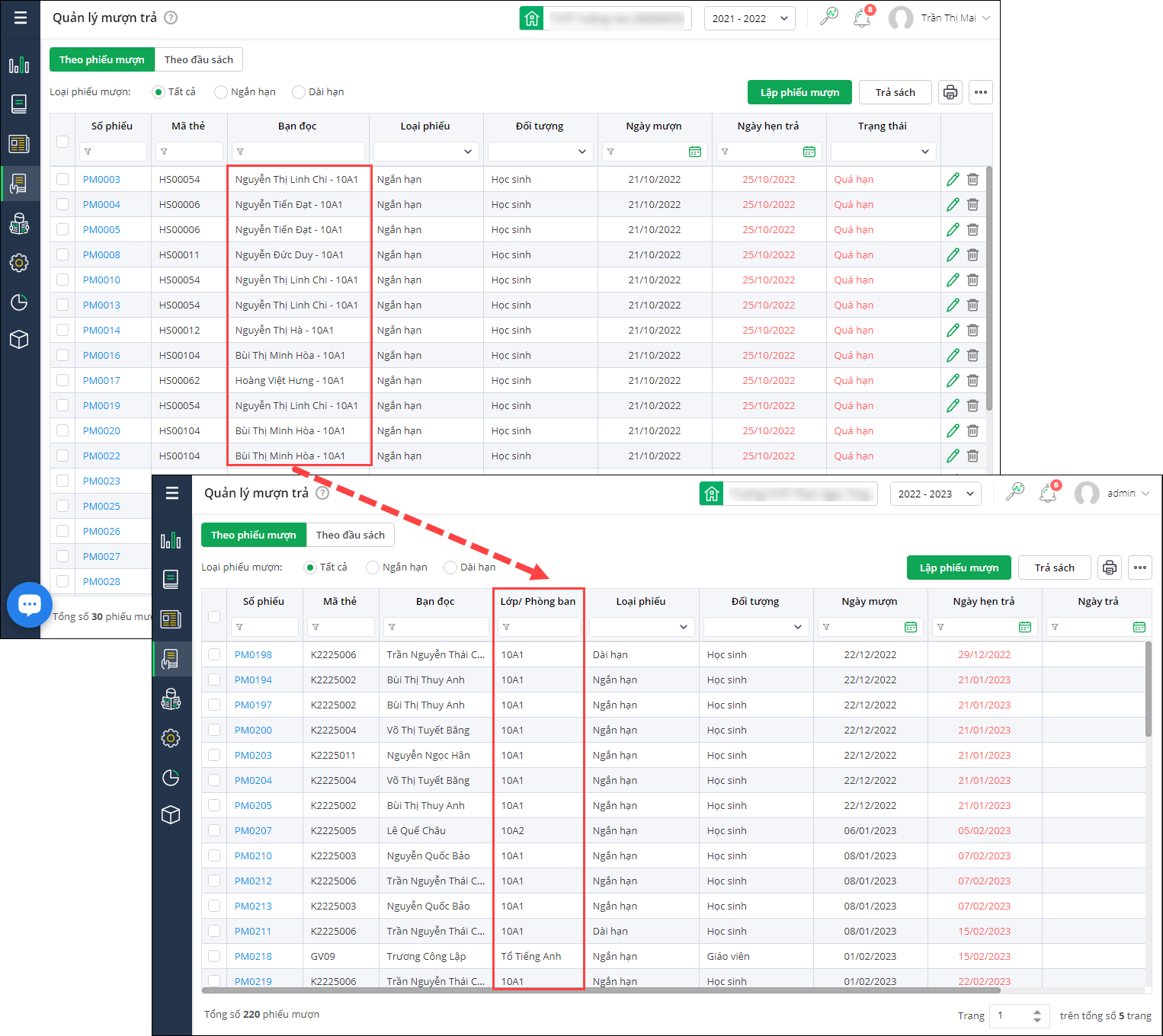- Xem thêm: Cán bộ thư viện mong muốn có danh sách học sinh chưa trả sách khi sắp đến hạn trả theo từng lớp để nhắc nhở thì làm thế nào?