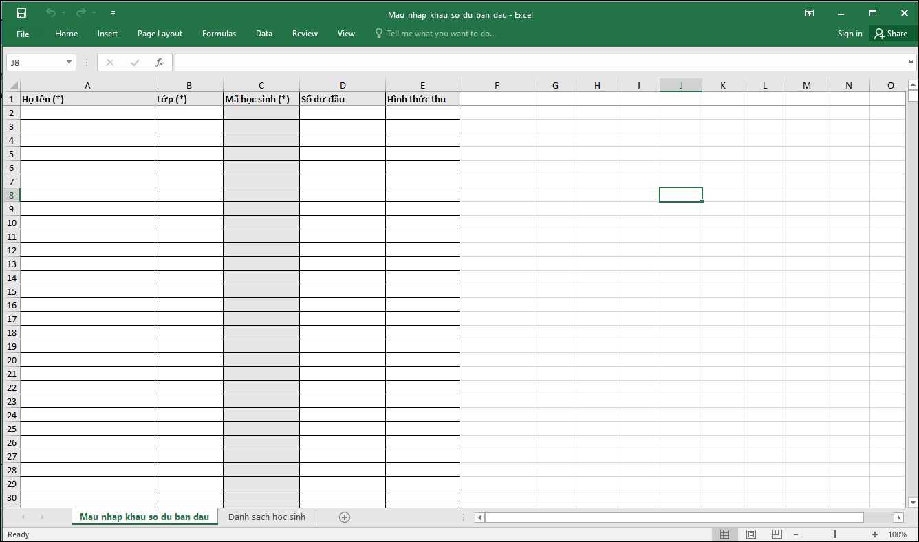 - Đưa cột Mã học sinh lên trước cột Số dư ban đầu.