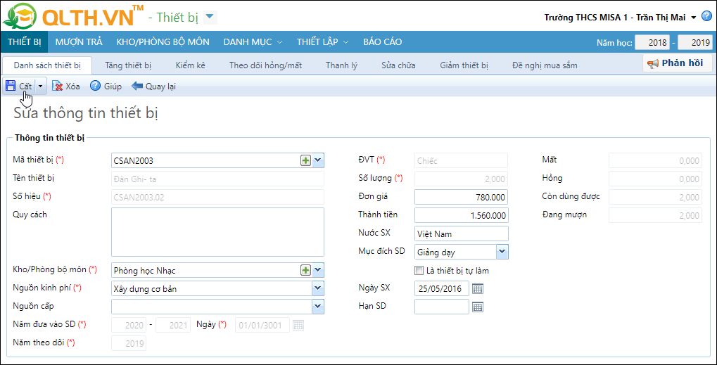 CBTB muốn có thể sửa lại thông tin về thiết bị kể cả khi đã phát sinh nghiệp vụ mượn trả, ghi tăng, giảm số lượng thiết bị