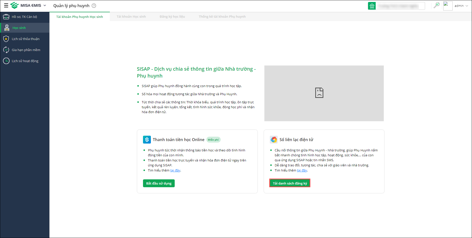 Sau khi được hướng dẫn, Cán bộ tin học nhà trường mong muốn dễ dàng lấy danh sách đăng ký gói SISAP để triển khai cho Phụ huynh