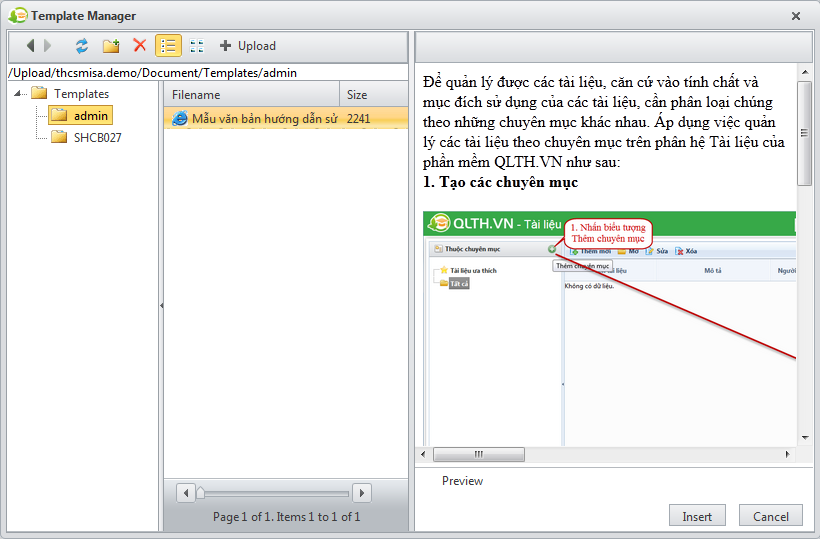 Ứng dụng Tài liệu hỗ trợ cán bộ giáo viên chèn thêm mẫu tài liệu đã có sẵn trên ứng dụng vào tài liệu đang soạn thảo